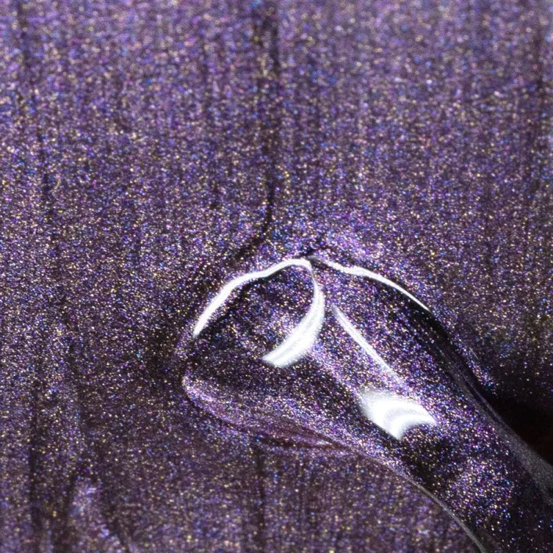 Le vernis semi permanent ultra-pigmenté et Soak Off Nuit Étoilée propose une teinte violette sombre, agrémentée de fines paillettes, inspirée du ciel étoilé.