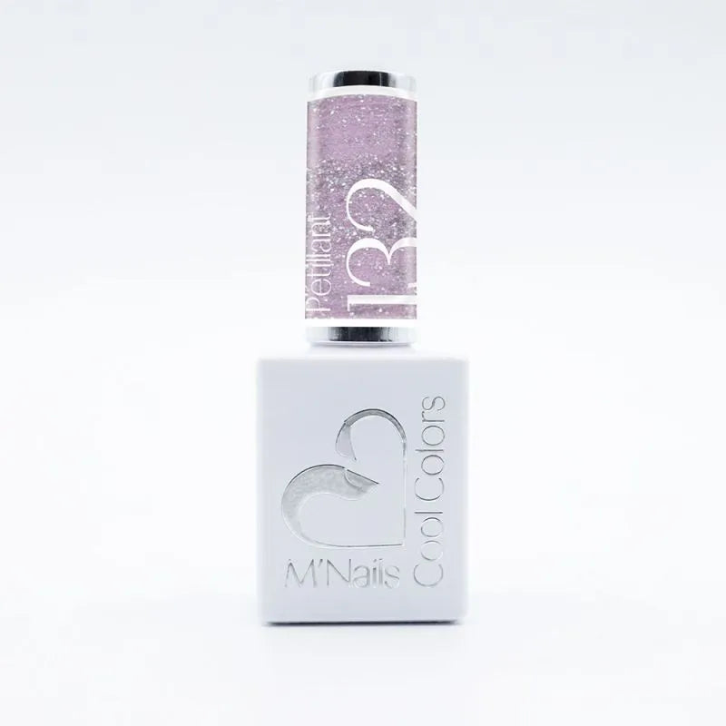 Le vernis semi permanent ultra-pigmenté et Soak Off Pétillant illumine les ongles avec une teinte rose clair sublimée de paillettes argentées.