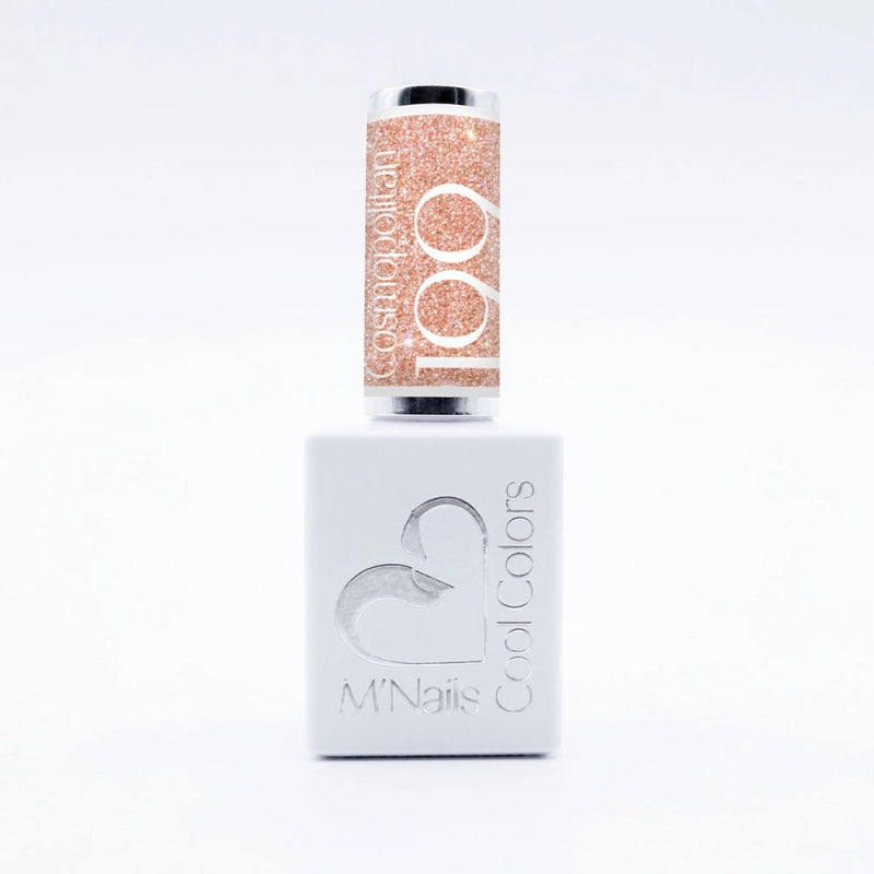 Le Cool Colors 199 Cosmopolitan est un vernis semi permanent ultra-pigmenté et Soak Off, qui révèle une teinte rose orangée réchauffée par des paillettes argentées et rose-orangé. Parfait pour des manucures estivales.